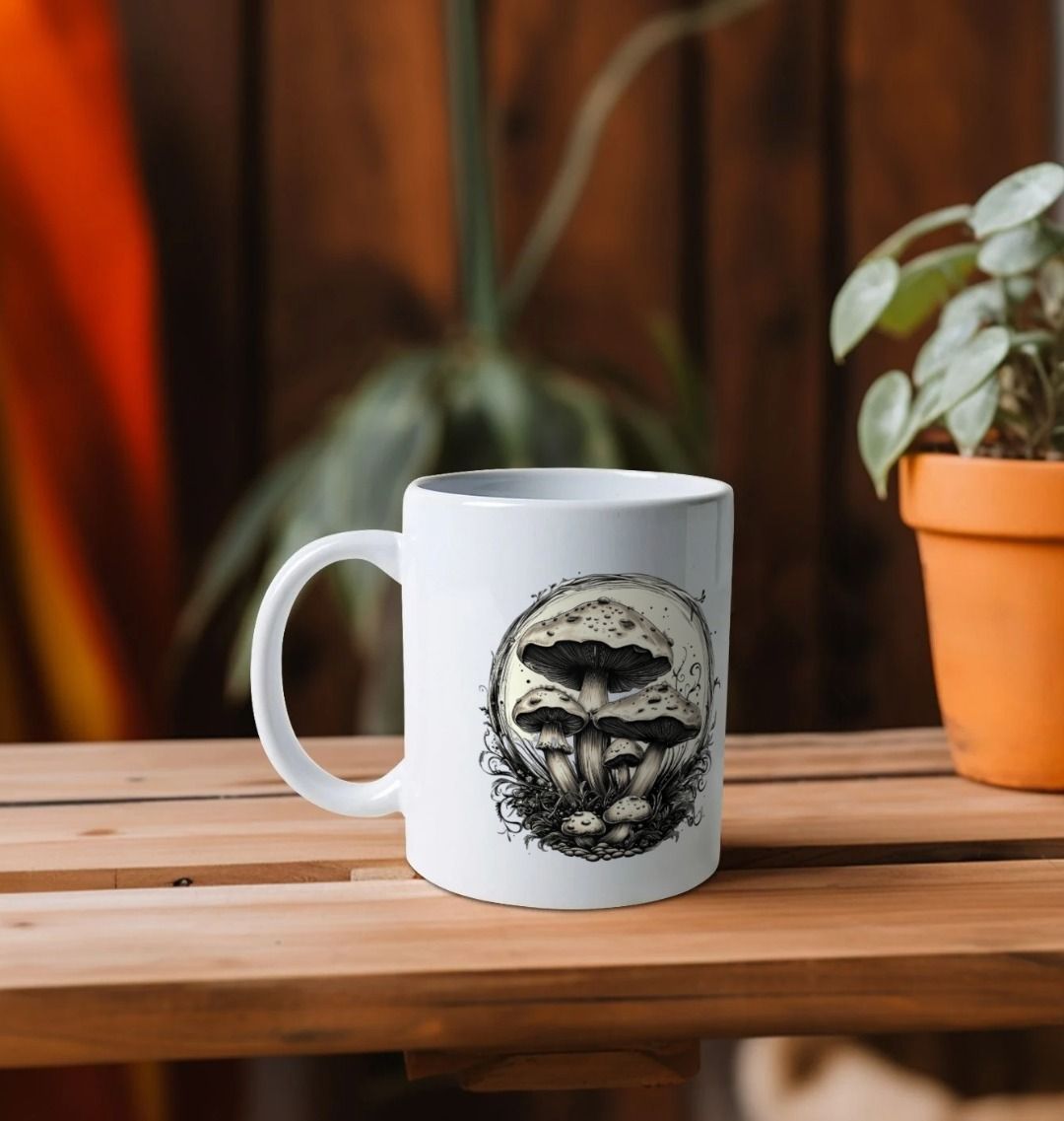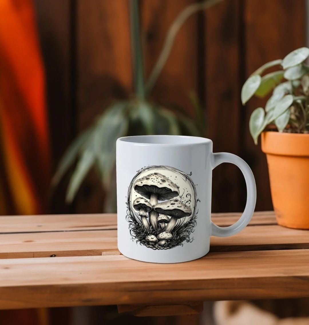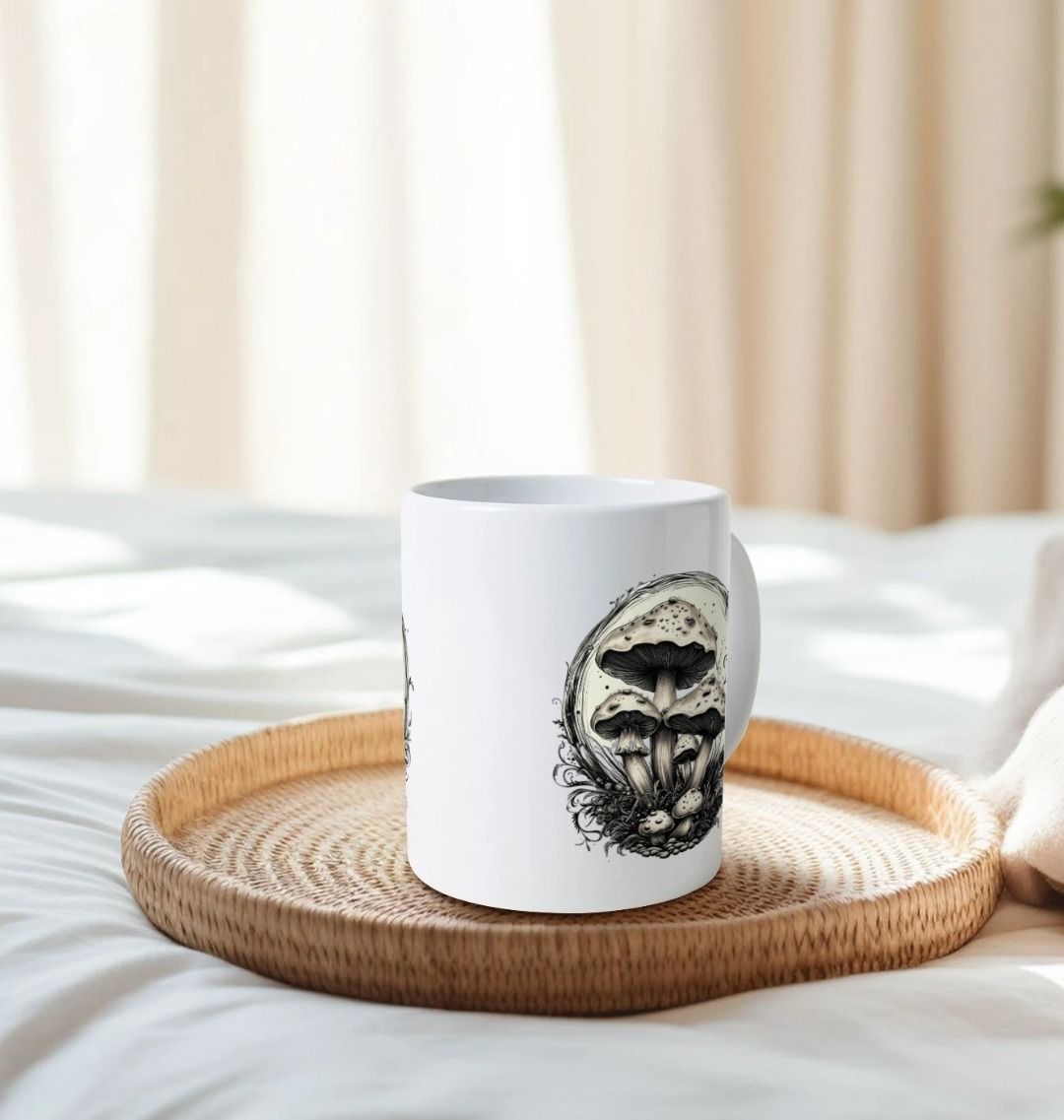 Elevate your daily ritual ☕✨ with this stunning ceramic mug, perfect for any occasion. Featuring a beautifully intricate mushroom design 🍄, inspired by nature’s delicate forms 🌿, this mug brings a touch of elegance to your morning tea 🍵, evening hot chocolate 🍫, or any of your favourite hot beverages. Its glossy white finish 🤍 ensures that the artwork is vivid and eye-catching 👀, making it a perfect gift 🎁 or addition to your personal collection.
